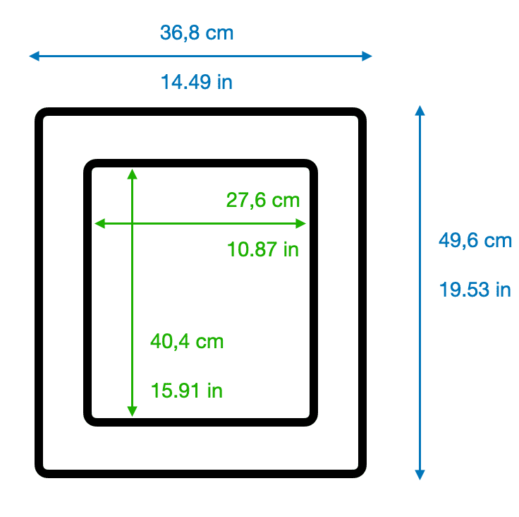 36,8 cm wide x 49,6 cm high