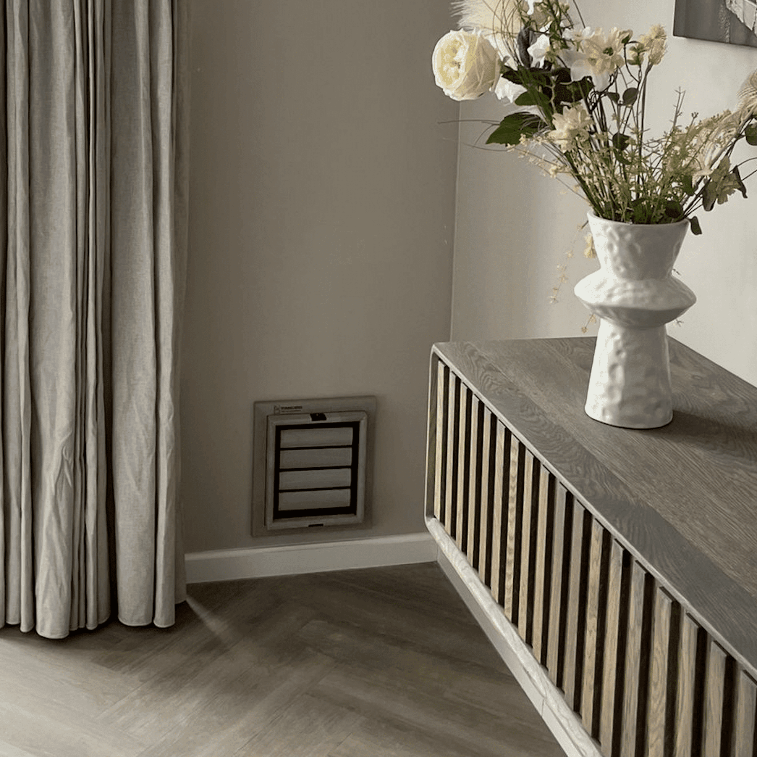 Naturel Nipper kattenluik, geschilderd in de kleur van de deur: stijlvol, mooi onopvallend.
